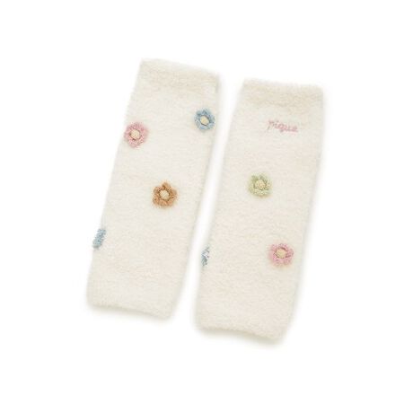 柔らかな肌触りで人気の’ベビモコ’ニットに、立体的でカラフルなお花を散りばめたBABY雑貨シリーズです。お花とスカラップのはき口がキャッチーなレッグウォーマー。ワンポイントでpiqueの刺繍も添えた華やかなデザインです。同シリーズのウェアや雑貨と合わせてギフトにもおすすめです。