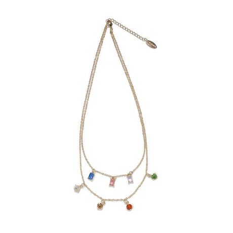 繊細なチェーンにカラフルなストーンを並べた2連デザインで、さりげない輝きを添えるネックレス。デイリー使いはもちろん、シンプルなスタイリングにも華やかさをプラスできる万能アクセサリーです。