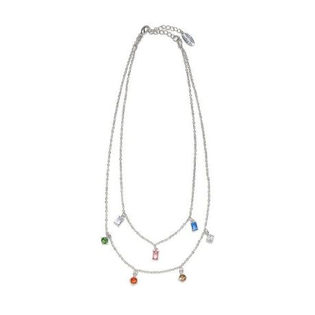 繊細なチェーンにカラフルなストーンを並べた2連デザインで、さりげない輝きを添えるネックレス。デイリー使いはもちろん、シンプルなスタイリングにも華やかさをプラスできる万能アクセサリーです。