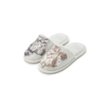 <b>ビジューを付けた優雅な猫たちのニットスリッパ</b>