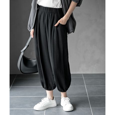 可愛いバルーンシルエットのイージーパンツ