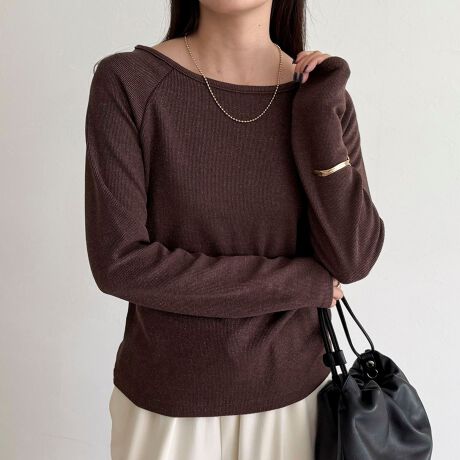 さりげない輝きで華やぐラメテレコボートネックプルオーバー