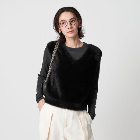 アレンジ次第でロングシーズン活躍。毛足感が愛らしいニットベスト。