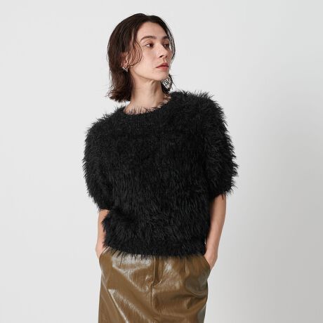 フェザー糸を使用した愛らしい表情が魅力の半袖ニット。