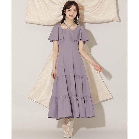 軽やかに揺れる、大人フェミニンなティアードワンピース【Design】・フレアスリーブで二の腕をさりげなくカバーしながら、女性らしいシルエットを演出するワンピ♪・首元はすっきりとしたVネックデザインで顔周りをシャープに見せます。・ホルターネック風のデザインがさりげないアクセントに。・袖口と裾に施したフレアが、動くたびに軽やかに揺れて華やかさをプラス。・バスト位置にタックを施し、立体感をもたせつつ上品な印象に仕上げました。・ゆったりとしたシルエットでリラックス感のある着心地ながら、きちんと感も兼ね備えています。【Fabric】・程よいハリ感とストレッチ性を備えた、シワになりにくく美しいシルエットをキープする素材です。・裏地付き。・ラベンダー、ブラウン、ブラックの3色展開となります。【Care】ドライクリーニング