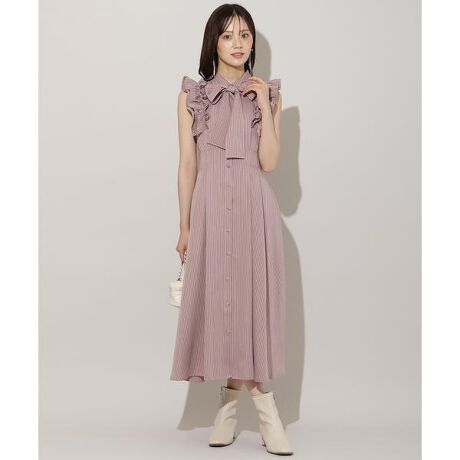 【新色追加】人気のシャツワンピに華やかさプラスした新デザイン登場【Design】・人気のシャツワンピースを華やかなフリルスリーブでアップデート♪・抜け感が出すぎないように、ビッグリボンで甘さのバランスを調整しました。・前開き仕様で着脱もらくらく♪・ウエストはバックレースアップ仕様で、後ろ姿まで抜かりなくスタイルアップ♪・リボンは取り外し可能なので、シーンに合わせた着こなしが楽しめます。・きちんと感を演出するストライプ柄3色と、夏らしさを楽しめるネイビーの2パターン展開◎・一枚でさらっと着るだけで、季節感のあるフェミニンスタイルが完成します!【Fabric】・シワになりにくく程よい落ち感とストレッチ性を兼ね備えた、快適な着心地の機能素材を使用。・裏地付き。・ホワイトストライプ、ピンクストライプ、モカストライプ、ネイビー、ブラックストライプの5色展開になります。【Care】・ドライクリーニング