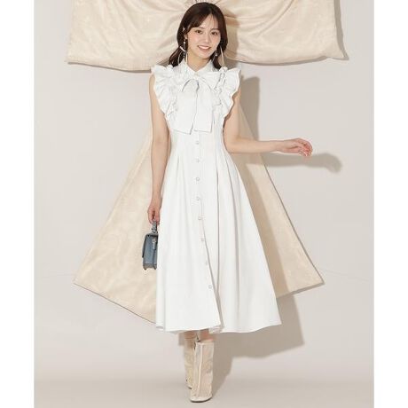 【新色追加】人気のシャツワンピに華やかさプラスした新デザイン登場【Design】・人気のシャツワンピースを華やかなフリルスリーブでアップデート♪・抜け感が出すぎないように、ビッグリボンで甘さのバランスを調整しました。・前開き仕様で着脱もらくらく♪・ウエストはバックレースアップ仕様で、後ろ姿まで抜かりなくスタイルアップ♪・リボンは取り外し可能なので、シーンに合わせた着こなしが楽しめます。・きちんと感を演出するストライプ柄3色と、夏らしさを楽しめるネイビーの2パターン展開◎・一枚でさらっと着るだけで、季節感のあるフェミニンスタイルが完成します!【Fabric】・シワになりにくく程よい落ち感とストレッチ性を兼ね備えた、快適な着心地の機能素材を使用。・裏地付き。・ホワイトストライプ、ピンクストライプ、モカストライプ、ネイビー、ブラックストライプの5色展開になります。【Care】・ドライクリーニング