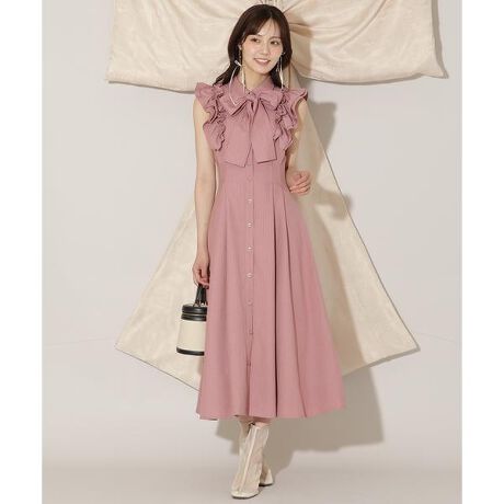 【新色追加】人気のシャツワンピに華やかさプラスした新デザイン登場【Design】・人気のシャツワンピースを華やかなフリルスリーブでアップデート♪・抜け感が出すぎないように、ビッグリボンで甘さのバランスを調整しました。・前開き仕様で着脱もらくらく♪・ウエストはバックレースアップ仕様で、後ろ姿まで抜かりなくスタイルアップ♪・リボンは取り外し可能なので、シーンに合わせた着こなしが楽しめます。・きちんと感を演出するストライプ柄3色と、夏らしさを楽しめるネイビーの2パターン展開◎・一枚でさらっと着るだけで、季節感のあるフェミニンスタイルが完成します!【Fabric】・シワになりにくく程よい落ち感とストレッチ性を兼ね備えた、快適な着心地の機能素材を使用。・裏地付き。・ホワイトストライプ、ピンクストライプ、モカストライプ、ネイビー、ブラックストライプの5色展開になります。【Care】・ドライクリーニング