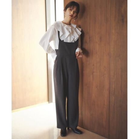 カジュアル感と大人っぽさが両立したこなれたサロペット。ワイドストラップとバックボタンが効いた、シンプルなのに洒落たデザインです。腰まわりにゆとりを持たせ、裾は緩やかに落ちるストレートシルエットを演出。縦ラインを強調しつつ、体型カバーも狙えます。シアートップスやシャツなど、合わせるインナー次第で印象が変わるので、様々なスタイリングを楽しめます。梳毛ライクな素材感で秋らしいスタイリングが叶います。<素材>ややメランジ感のある梳毛調素材を使用しています。<詳細>仕様・後ろファスナー裏地・なし透け感・なし / 光沢・なし / 伸縮性・ややあり生地の厚さ・普通 ※モデルの着用画像の場合、光の当たり具合により、実際の色味と異なって見えることがございます。色味は、商品単体の画像をご参照ください。