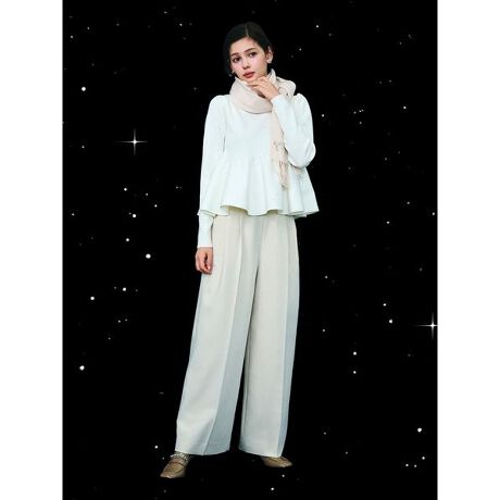 しっかりとした仕上がりなのに腰まわりをすっきりとさせた美設計で、絶妙なワイドシルエットに仕上げたパンツ。