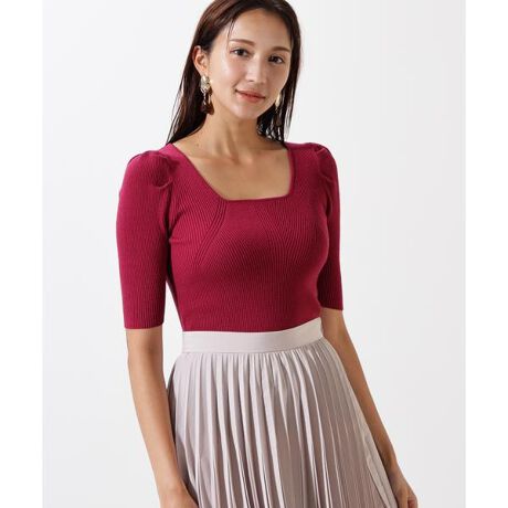 滑らかなニット素材のパフスリーブプルオーバー。控え目な肩タックでパフを表現しているため、甘すぎず、二の腕をさりげなくカバーしてくれます。また、パフと、すっきりした半袖とのコントラストで腕の細さが引き立ち、華奢見えが叶います。ラウンドスクエアカットのネックラインや、身頃のバイアスリブ模様がさらに上半身をすっきりと見せてくれます。スカート、パンツ問わず様々なボトムスと相性が良く、ジャンスカのインナーとしても着まわせる、汎用性の高い1着です。
