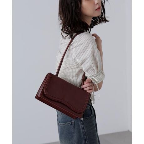 [型番:1315291032]横長シルエットが可愛らしい今季トレンドのショルダーバッグ。見た目以上に収納力があり、普段使いからちょっとしたお出かけスタイルまで活躍します。※モデルの着用画像の場合、光の当たり具合により、実際の色味と異なって見えることがございます。色味は、商品単体の画像をご参照ください。