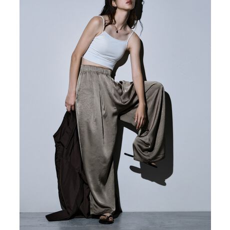 ヴィンテージライクな光沢感が美しいマットサテン生地で仕上げたワイドパンツ。