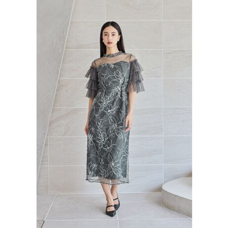 niana ニアナ ラメ糸で刺繍した大胆なフラワーレースのオケージョンドレス。