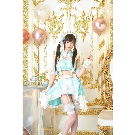 クリアストーン20周年を記念して作られた特別なメイド服。デザインはコスプレイヤー、タレントなどマルチに活躍中のえなこさんが監修。クリアストーンのロゴをイメージしたミントカラーや蝶、ビジューなどのモチーフをたっぷり詰め込みました。セパレートタイプなので低身長さんでも着こなしやすく、トップスのストラップは長さの調整が可能。スカートはウエストゴム仕様で履きやすい。露出を抑えたい人はパニエを合わせるのもおすすめ。ベルト部分にはClearstone20thのプリント入り。コスチュームと同デザインのショーツもセットなので、トータルコーディネートもバッチリ。