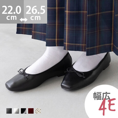 幅広さん向け 4E スクエアトゥ フラットバレエシューズ』