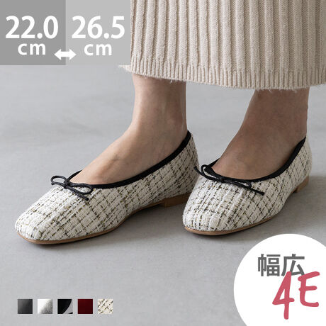 幅広さん向け 4E スクエアトゥ フラットバレエシューズ』