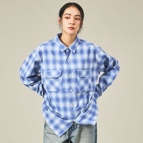 人気のオンブレチェック柄ボートシャツ/オープンカラーシャツ