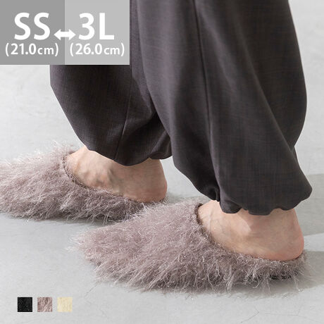 毛足の長いふわふわなシャギー素材をたっぷり使ったトレンドライクなミュールサンダル。