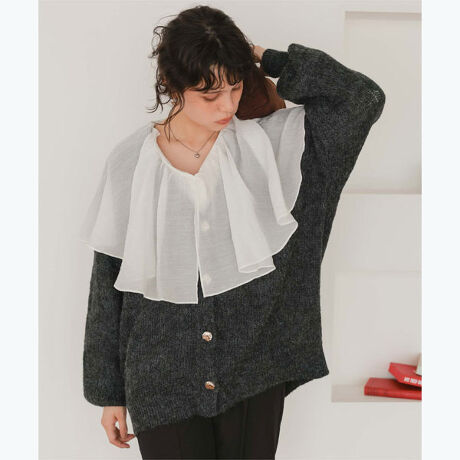 ・ふんわり透け感がかわいい、モヘアライクな軽やかニットカーディガン