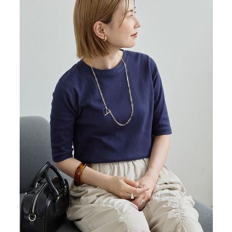 Tシャツ クルーネック レディース 5分袖 リブ素材 二の腕カバー オフィスカジュアル 30代 40代 レディース カジュアル 秋冬 25AW AMERICAN HOLIC AMERICAN HOLIC アメリカンホリック アメホリ