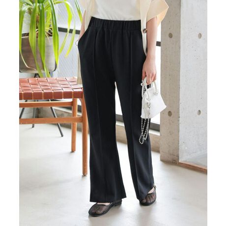 ウエストはゴム仕様で快適な穿き心地ながら、裾に向かって緩やかに広がるラインが美脚効果を演出します。