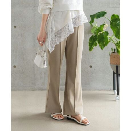 ウエストはゴム仕様で快適な穿き心地ながら、裾に向かって緩やかに広がるラインが美脚効果を演出します。