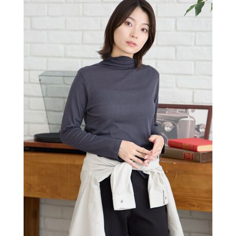 ドライな肌ざわりが心地よいタートルネックカットソー。