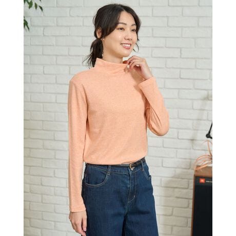さりげなく光るラメ糸を織り込んだフライス素材のハイネックインナー。