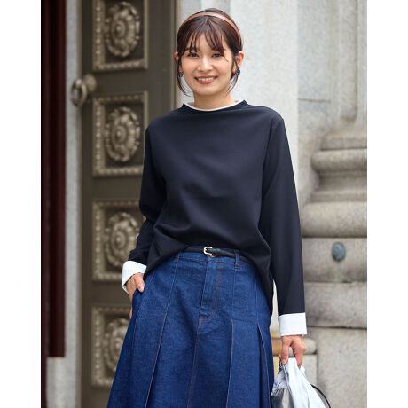 白いシャツを重ね着しているようなクラシックスタイルのアイテム。袖口のメタルチャームが光る様子も華やかなフェミニンさがありオフィスや握手会でお召しになっても素敵です。シックなブラックの使い勝手は抜群!オレンジも顔映りが良くトレンドのブラウンと相性がいいのでおすすめ。