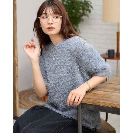 モジャモジャした長い毛羽が印象的なシャギーのニットプルオーバー。全身に1.5cmほど吹く糸には光沢があり暑苦しさが軽減されゴージャスな見た目が魅力です。肘にかかる袖丈で1枚着はもちろん、気温に応じてインナーにシャツやロンTを合わせる着方もおすすめ。