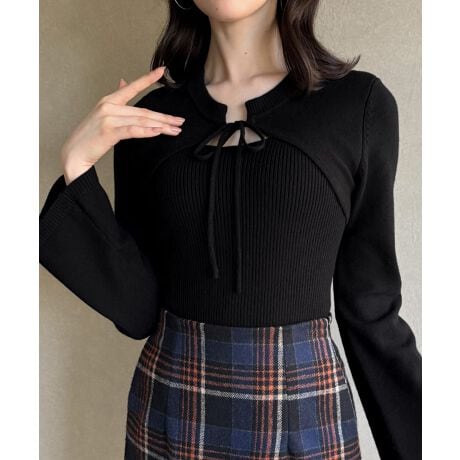 リボンフレアスリーブニット