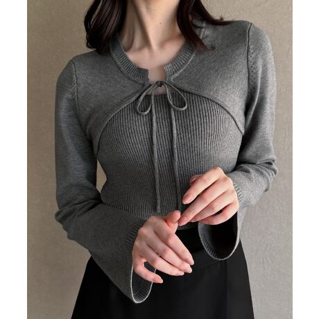 リボンフレアスリーブニット