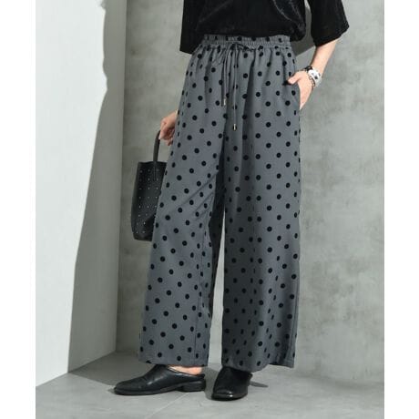 [型番:13173014]フロッキードット柄がプリントされた大人なワイドパンツシンプルな大人っぽいドット柄!リラックス感のあるワイドシルエットで着こなしやすく今年らしい雰囲気に仕上げました。さらりとした素材が気持ちよく、普段使いからトラベルやレジャーまで、大活躍間違いなしの1枚です。いつものスタイルに抜け感を演出してくれます。トップスはシンプルなニットやカットソーを合わせてパンツが主役のコーディネイトを楽しんでください♪