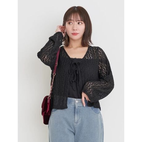 レース素材で仕立てた大人ガーリーなカーディガン。