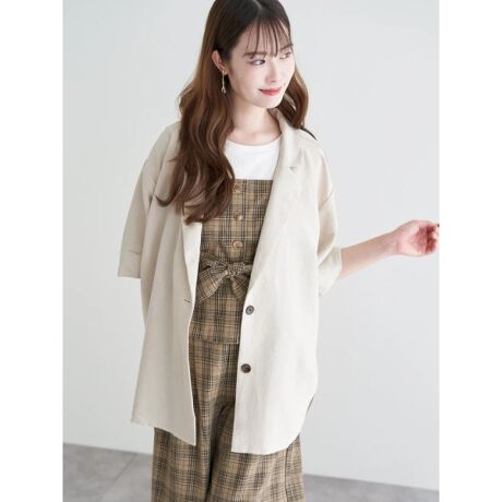 暑い時期でもきちんと感をプラスできる半袖ジャケット。
