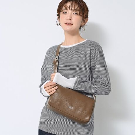 本革素材のミニショルダーはコンパクトなサイズ感ですが、マチがしっかりあるので長財布やポーチなどいれるのにもぴったりです。