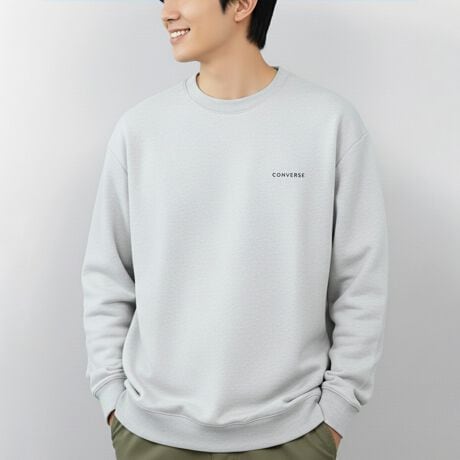 ベーシックなクルーネックにリブ仕様の袖口と裾を合わせた王道のトレーナー。フロント左胸にはワンポイントのロゴ刺繍を施し、バックにはコンバースを象徴するスニーカーデザインをサガラ刺繍で大胆に表現。立体的で存在感のある仕上がりが、シンプルながらも印象的なアクセントとなっています。ユニセックスで幅広く取り入れやすいデザインです。
