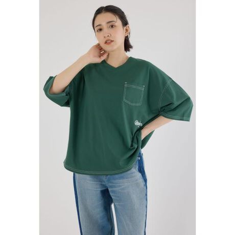カラーステッチVネック5分袖Tシャツ