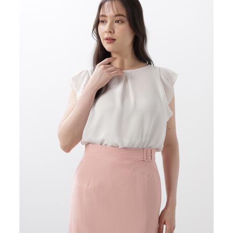 袖にプリーツ加工を施したラッフルスリーブは、動くたび軽やかに揺れてフェミニンな印象。