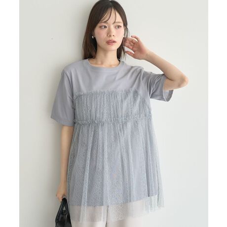 ニュアンスある繊細なレースをドッキングしたフェミニンな印象のプルオーバー。ベースはコットン素材のナチュラルなカットソー生地で楽な着心地なのも嬉しいポイントです。ふんわりと広がる長めの丈感も魅力的。シルエットパンツやナロースカートなど、様々なボトムと合わせていただけるおすすめのアイテムです。透け感[ややあり]