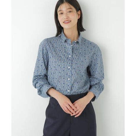定番シャツデザインにリバティプリントをのせました。程よいサイズ感の衿と着心地の良さ、きちんと感を両立させるサイズ感でおつくりしています。