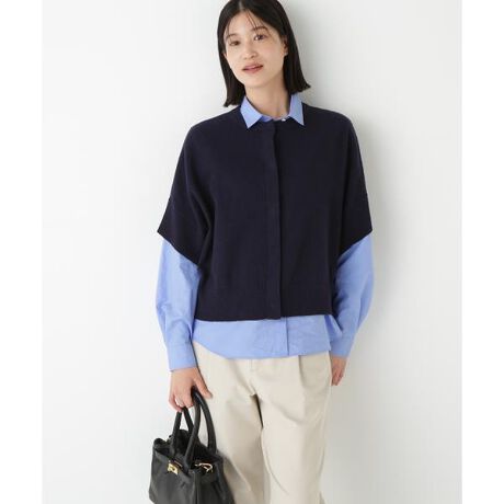 ショート丈のポンチョのようなシルエットのカーディガンです。5分袖丈はレイヤーすると楽しいバランスになります。ゆったりバランスなので肌離れがいいですが、裾リブのサイズ感が丁度腰にフィットするのでルーズすぎず収まりのいいデザインです。