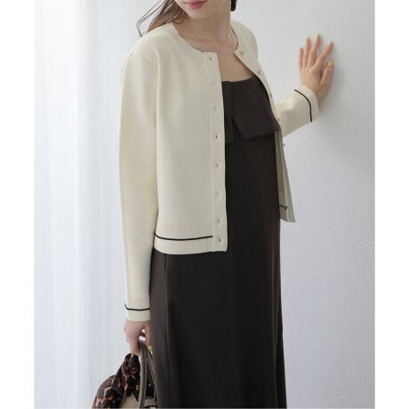 ボタンを閉じたプルオーバー風な着こなしから、ワンピースに羽織った上品スタイルまで、一枚で着回しのバリエーションが広がります。