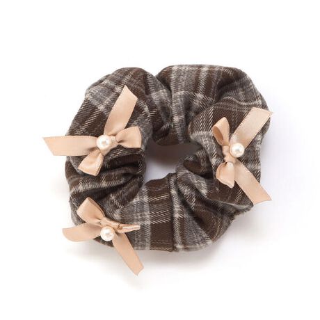 ブラウン系:秋冬にぴったりなチェックにベージュのリボンがおねえさんっぽい