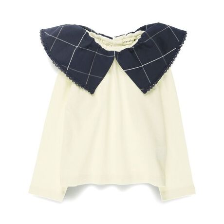 キッズ女児:12-5305-063 【おそろい】チェック襟付き長袖Tシャツ