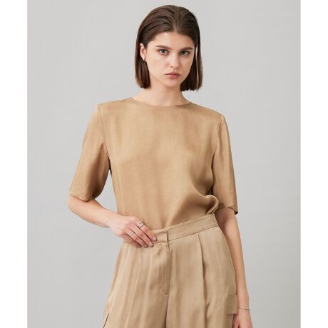 ■デザイン前後差の付いたサイドスリットがポイントのシンプルなブラウスです。素材表情を活かしたベーシックなデザインで、一枚はもちろん、同シリーズのカーゴパンツとのセットアップ着用もおすすめです。