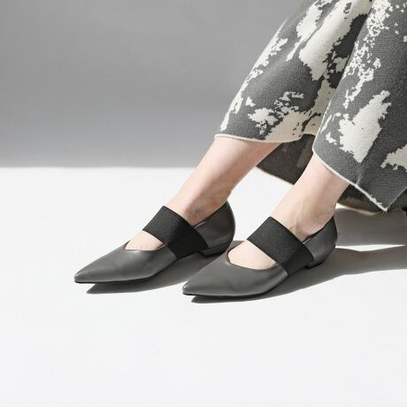 足元からポインテッドトゥ×ワイドゴムストラップで、