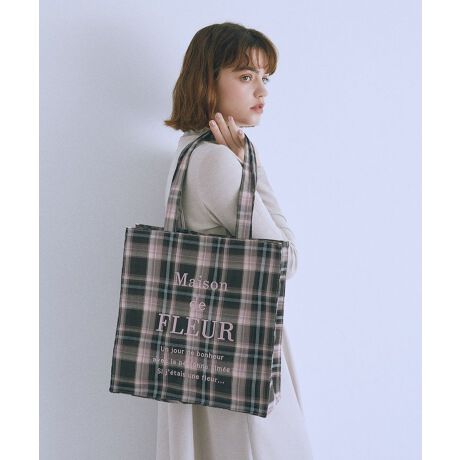 チェック柄の生地と同色のブランドロゴ刺繍が大人可愛いポイント♪