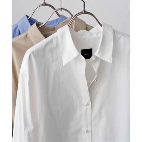 リラックス感のあるワイドシルエットに、上品なパールボタンをあしらったデザインシャツ。